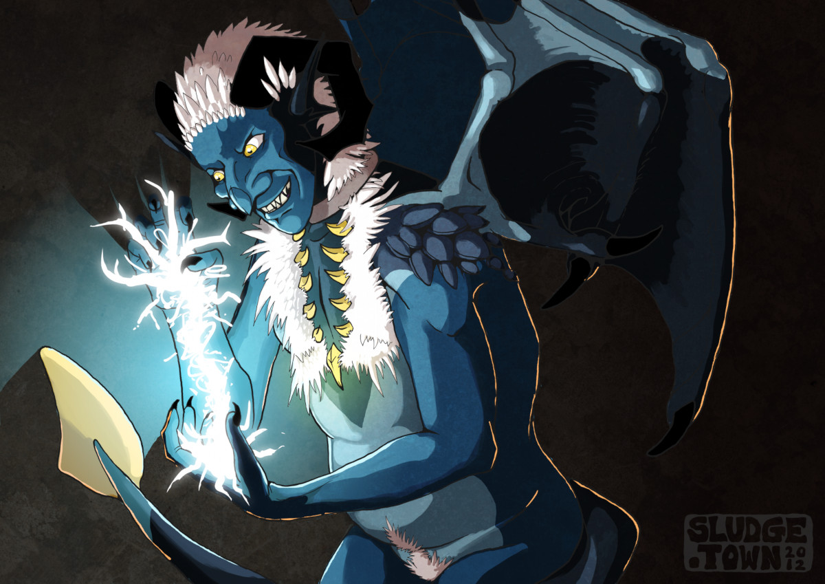 Murgatranthes up to something sinister. If I remade this, I'd definitely add some shading to the horns. At the time, I'd decided that Murgatranthes's horns and wing-claws were vantablack and reflected no light, but I scrapped that because in artwork it just looked as though I'd forgotten to add any shading.