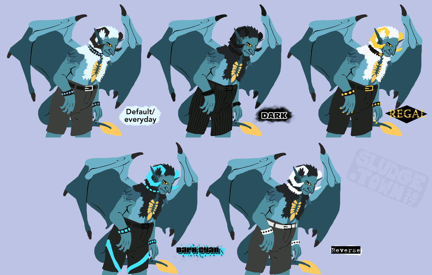 Some of Murgatranthes' favourite/most commonly seen palette swaps. She paints her horns and dyes her feathers.