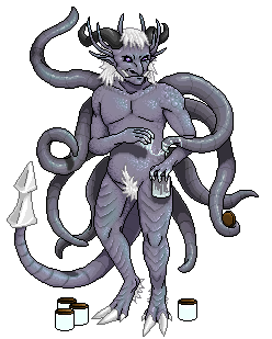 Phelmarith is a healer who heals anyone who needs it, which makes him more or less equally popular and unpopular. His services are not free, but he allows everyone as much time as they need to pay him back. Phelmarith can heal patients directly using his healing magic, and he also produces healing slime from his tentacles. The slime is not particularly potent in its raw state, but can be refined into healing potions by alchemists.